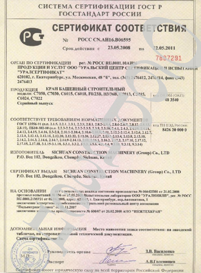 C7050塔機被法國科技質量監督評價委員會推薦為高質量產品;C7050塔機被中國國際貿易促進委員會列為中國進入WTO推薦產品。