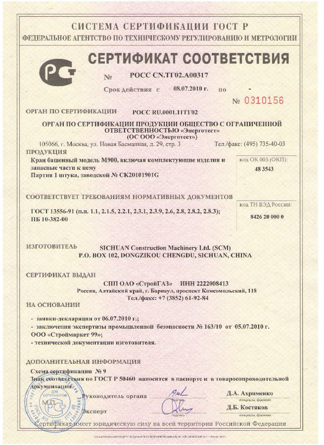 工廠引進國外先進技術,并迅速消化吸收后全部實現了國產化,產品達到國內最高水平,國際八十年代水平,帶動了企業全面的技術進步,為今后十年的塔機發展奠定了堅實的基礎,同時也取得了顯著的經濟效益。建設部副部長,著名書法家葉如棠提寫企業精神:團結勤奮.求實效能;登記新商標SCM,被認定為全國機電產品出口基地企業。
