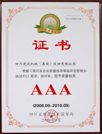 1月 四川省質量技術監督局授予質量信用AAA證書;
