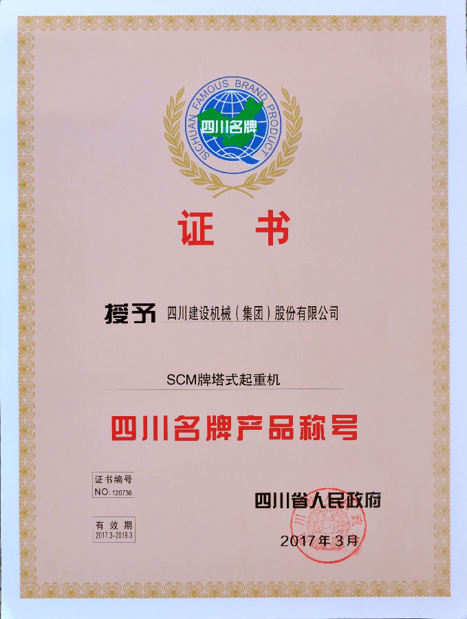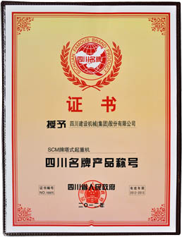 3月 SCM牌塔式起重機獲“四川名牌產品稱號”;