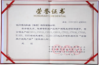 榮獲“用戶滿意工程”先進企業,產品連續三年獲得全國“用戶滿意獎”。C7050塔機通過部級鑒定,為當時中國塔機之最。中標廣東嶺澳核電站工程各類塔機13臺,合同金額達千萬元以上;江蘇江陰長江公路大橋;SCM塔機首次進入西藏高原。塔機被市政府列為成都市四大支柱產業之一。資信等級被評為AAA級企業。被成都市政府評為1996年度“納稅光榮戶”。
