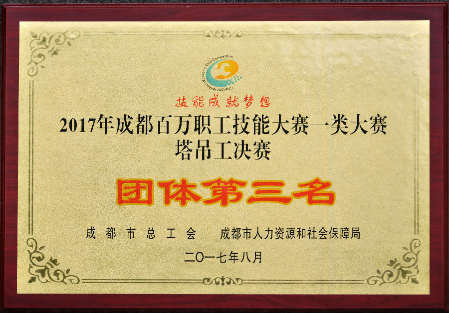 8月 榮獲成都市塔吊工技能大賽團體第三名;