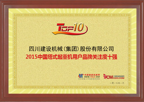 1月 獲“2016中國塔式起重機用戶品牌關注度十強”稱號;