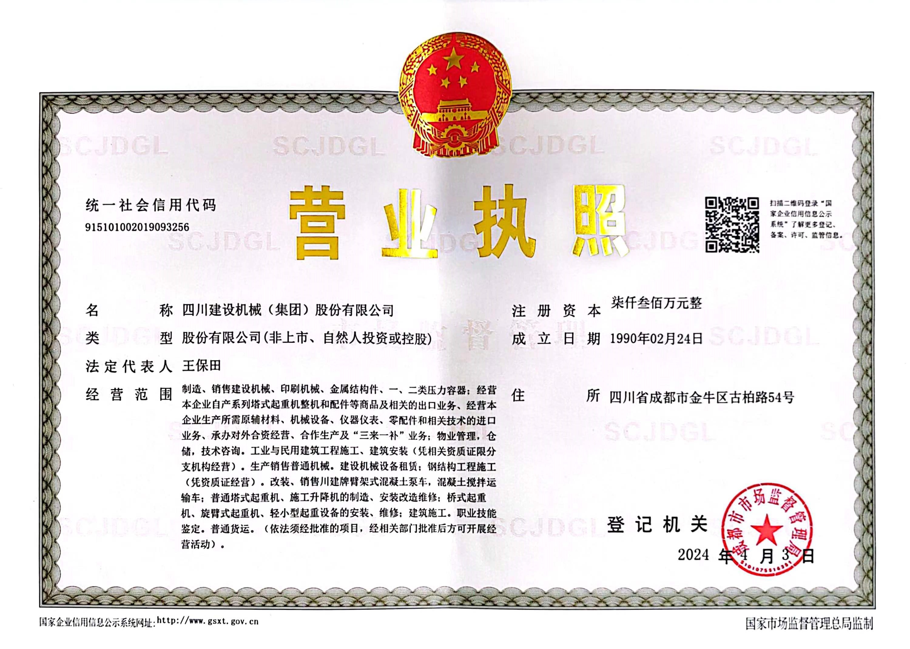 四川建設機械(集團)股份有限公司位于四川省成都市,是中國從事建設機械生產和銷售的大型企業,國內同行業率先通過ISO9001國際質量體系認證,被認定為全國企事業知識產權試點單位、國家質量效益型先進企業、國家高新技術企業、國家一級計量和理化認證企業、國家兵工動員企業及外貿自營企業,連續十一次被中國質協評為“全國用戶滿意企業”。?